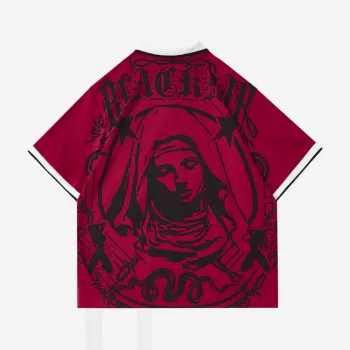 Streetwear Polo Shirt with Virgin Mary Graphic Embroidery